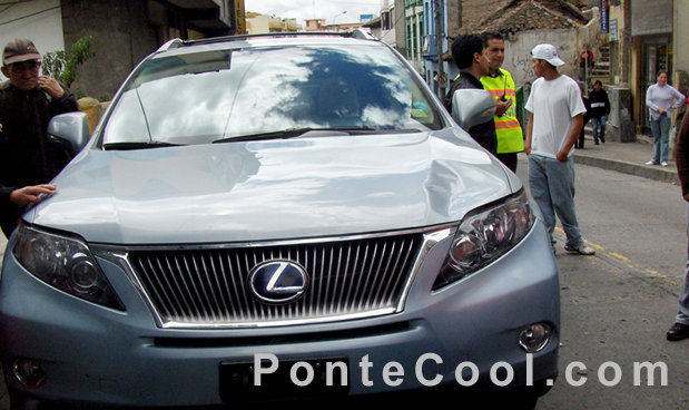El golpe fue de tal fueza que la parte delantera del automovil quedo undida por el impactó, enseguida moradores del sector lograron detener al conductor que supuestamente habia atropellado al peaton. El conductor permaneció dentro del auto.